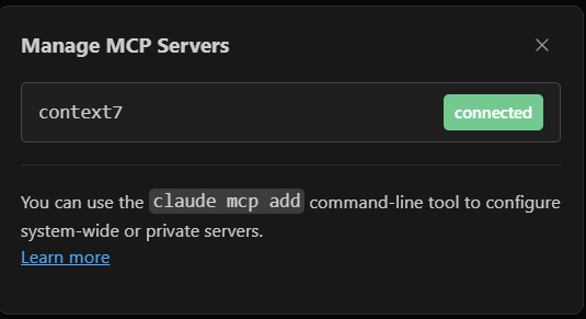 在正式写代码前,我们可以考虑添加MCP服务器以提高AI的代码水平。可以添加常用的MCP如context7。